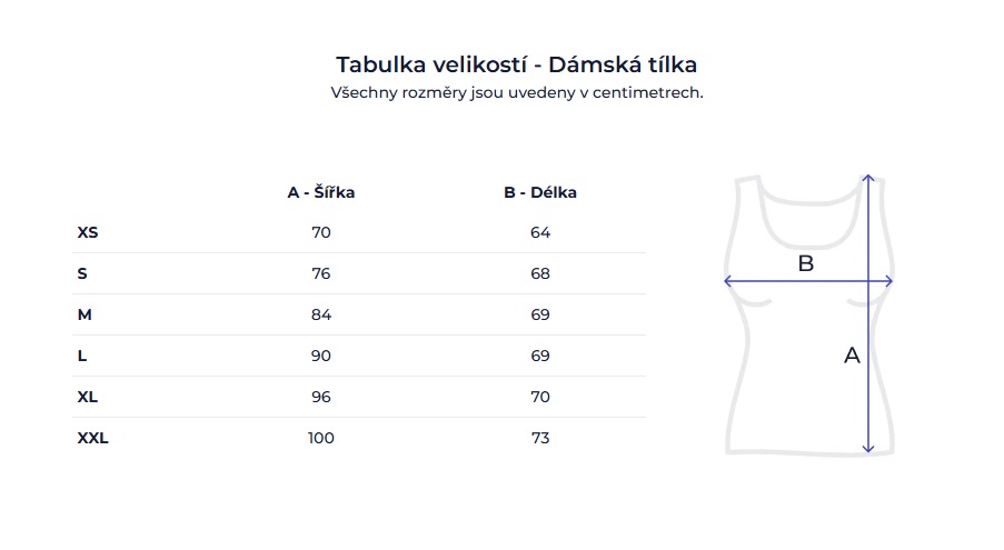Dámská tílka A = šířka • B = délka