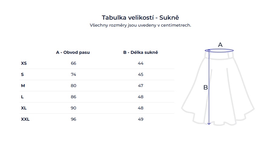 Sukně A = obvod pasu • B = délka sukně