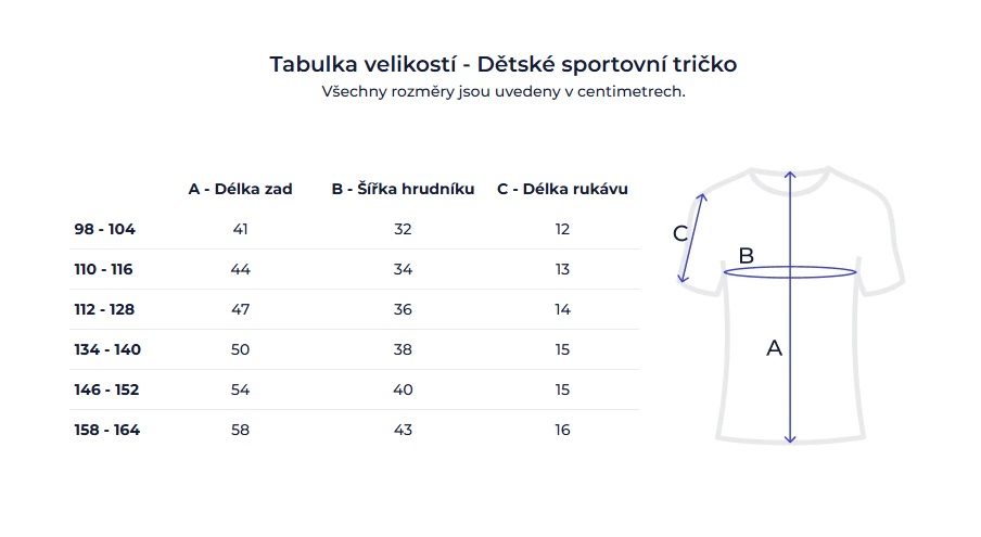 Dětské sportovní tričko A = délka zad • B = šířka hrudníku